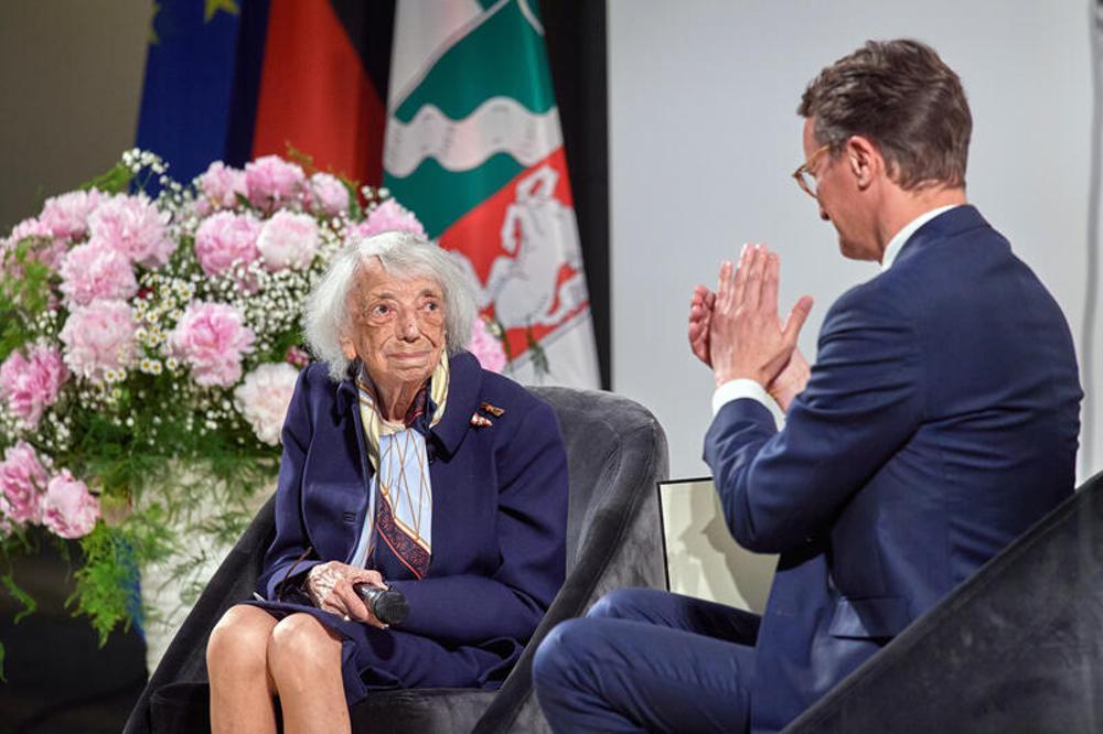 Er würdigte Friedländers großes Engagement in der Erinnerungsarbeit, für Toleranz und Versöhnung zwischen den Kulturen sowie ein friedliches Miteinander der Religionen. „Sie erinnern, Sie mahnen, Sie schenken jungen Leuten Vertrauen, Hoffnung und Liebe, Menschenliebe“, betonte Wüst. Ihre Weigerung zu hassen und ihr Glauben an das Gute im Menschen eine sie mit Mevlüde Genç, an die die Auszeichnung erinnert.