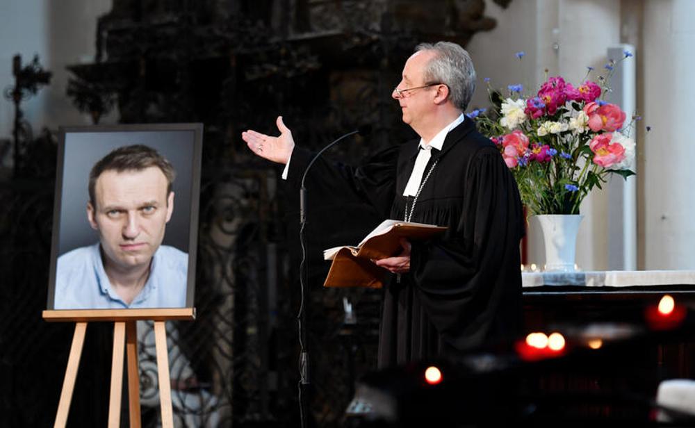 Eingeladen hatte die Evangelische Kirche in Deutschland (EKD). Der Berliner Landesbischof Christian Stäblein sagte, man werde Nawalny nicht vergessen; denn das sei, was die Verfolger und Machthaber wollten: Nawalny und das, was ihm widerfahren sei, zu vergessen. Viele von Nawalnys 47 Lebensjahren hätten in einem Ringen bestanden, einer Suche nach Freiheit und Gerechtigkeit, „darin immer wieder Haft und Gefängnis, Drangsalierung, seelische Folter und körperliches Erniedrigen“. Er sei ein „Streiter für Menschenrechte“ gewesen, sagte Stäblein, der Flüchtlingsbeauftragter der EKD ist.