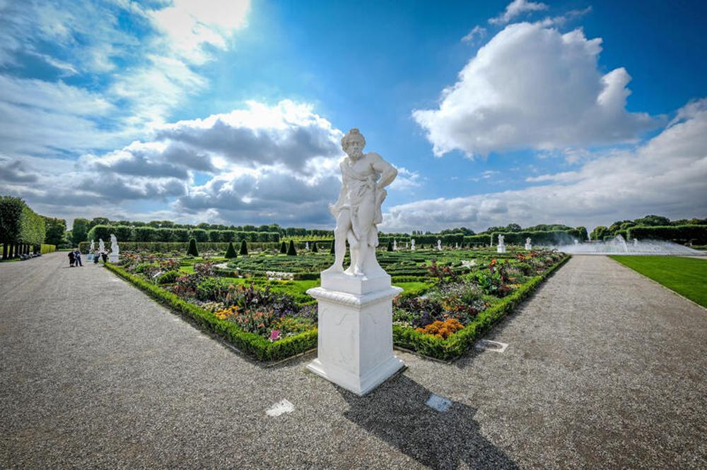 Sie erleben dabei authentische Einblicke in die Gartenkunst des Barockzeitalters. Schnurgerade Wege lenken die Blicke, Beete und Hecken formen sich zu Ornamenten, weiße Sandstein-Figuren aus der griechischen und römischen Mythologie setzen optische Akzente. Hinzu kommen Springbrunnen und Fontänen, Treppen und eine Grotte. Nichts ist hier dem Zufall überlassen, alles ist regelmäßig und symmetrisch angeordnet. Damit folgt der Große Garten dem Geist des Rationalismus: Der Mensch prägt die Natur. Allein die Buchsbaum-Hecken schlängeln sich über 15 Kilometer.