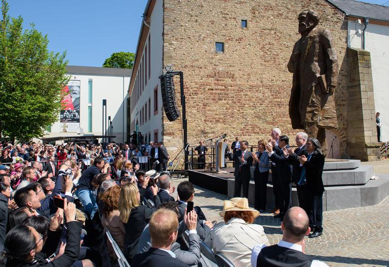 Bei strahlendem Sonnenschein wurde ie mit einem roten Tuch verhüllte Marx-Statue vor rund 3.000 Zuschauern eingeweiht. Die Skulptur ist mit Sockel 5,50 Meter groß und zeigt den Vordenker des Kommunismus erhobenen Hauptes und nach vorne schreitend. Neben Anhängern der in China verfolgten Falun-Gong-Bewegung protestierte auch die AfD mit einem Schweigemarsch, an dem laut Polizei rund 70 Menschen teilnahmen. Der Gegenprotest des Multikulturellen Zentrums Trier gegen den AfD-Marsch startete nach Polizeiangaben mit 150 Teilnehmern und wuchs im Verlauf des Demonstrationszugs auf rund 500 Menschen an.