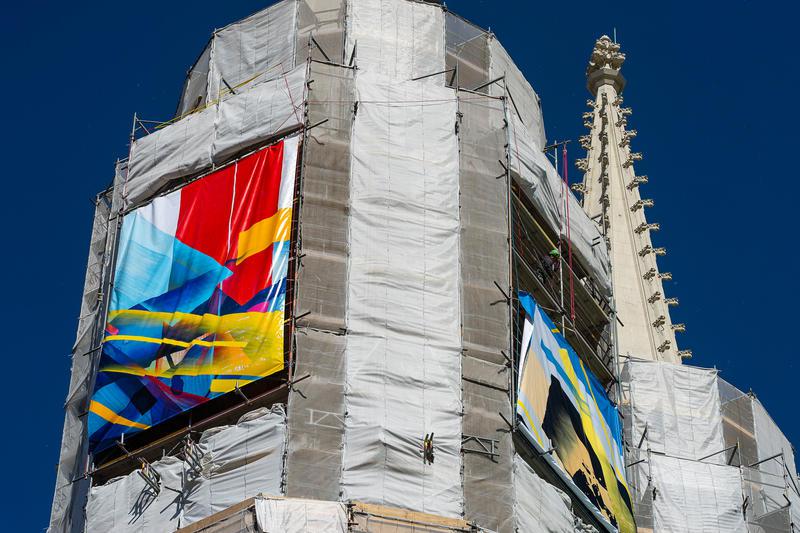 Görlitz (epd). Die Türme der evangelischen Görlitzer Peterskirche setzen mit abstrakter Graffiti-Kunst der Streetart-Künstlerin MadC ein Zeichen für Europa. Als erste der insgesamt fünf je rund 30 Quadratmeter großen Planen wurden am 25. April die Werke "Europa" und "Görlitz" am Baugerüst der Kirchtürme aufgehängt, sagte Pfarrer Bernd Arlt von der evangelischen Innenstadtgemeinde Görlitz dem Evangelischen Pressedienst (epd) in Görlitz. Die Kunstwerke, an deren Entstehung auch acht Schülerinnen und Schüler aus Görlitz beteiligt waren, sollen bis zum Herbst in der Grenzstadt gezeigt werden.