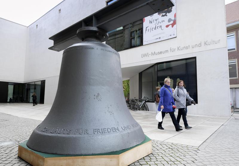 Das mit vier Tonnen wohl schwerste Ausstellungsobjekt ist die Dessauer Friedensglocke. Sie wurde aus unbrauchbar gemachten DDR-Waffen gegossen und steht seit 2002 in der ostdeutschen Stadt. Für die Friedensausstellung ist sie vor dem Eingang des LWL-Kunstmuseums am Domplatz zu sehen.