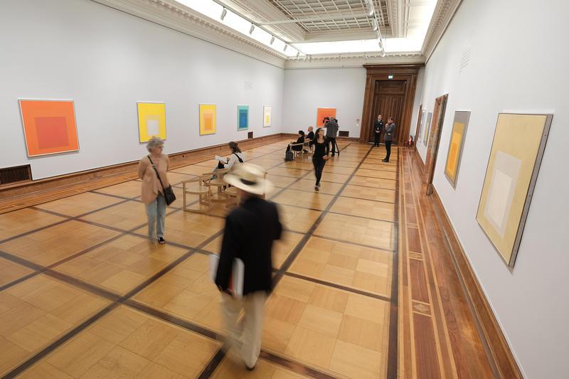 Dort widmet die Kulturstiftung Ruhr dem deutschen Maler und Kunstpädagogen bis zum 7. Oktober eine Retrospektive. Es sei die erste Gesamtschau zu Albers seit 30 Jahren, sagt der Direktor des Josef Albers Museum Quadrat Bottrop, Heinz Liesbrock. Er hat die Schau "Josef Albers. Interaction" kuratiert, die rund 170 Werke des in Bottrop geborenen Künstlers gezeigt. Die Exponate stammen aus dem Bottroper Museum sowie als Leihgaben aus bedeutenden amerikanischen Sammlungen.