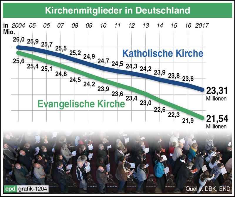 Der Mitgliederschwund summierte sich damit bei beiden Kirchen auf 660.000. 2016 waren es insgesamt rund 530.000 verlorene Mitglieder. Dennoch gehört noch mehr als die Hälfte (54 Prozent) der Bevölkerung einer der beiden großen Kirche an. Hinzu kommen Christen aus orthodoxen oder Freikirchen.