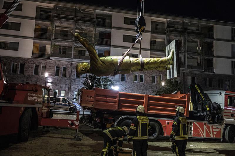 Nach Polizeiangaben verlief der Abbau der Statue weitgehend friedlich. Die rund 100 Personen vor Ort seien der Aufforderung, den Platz zu verlassen, ohne weiteres nachgekommen. Das Kunstwerk sei von der Feuerwehr abtransportiert worden. Ein Mann sei vorübergehend in Gewahrsam genommen worden. Er habe nach der Räumung des Platzes andere Anwesende provoziert. Einem Platzverweis sei er nicht gefolgt.