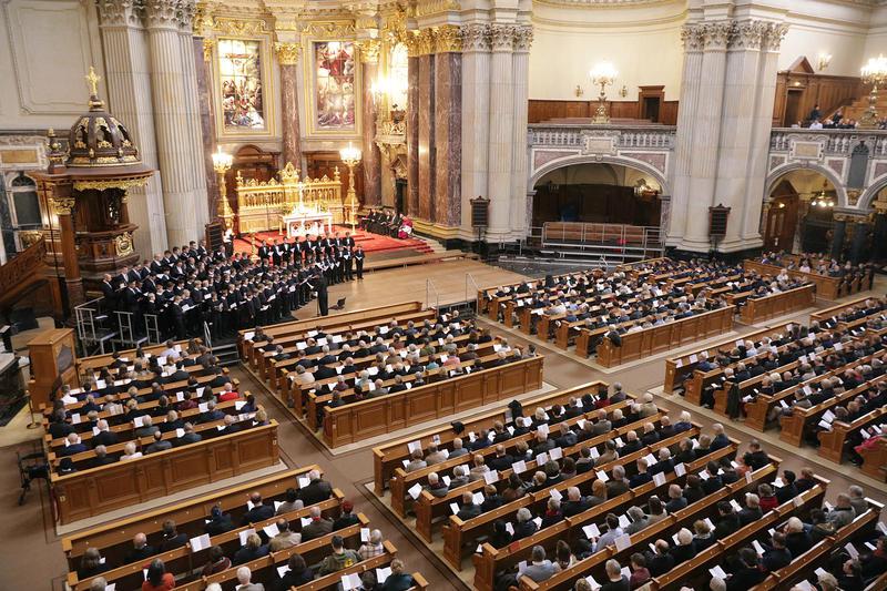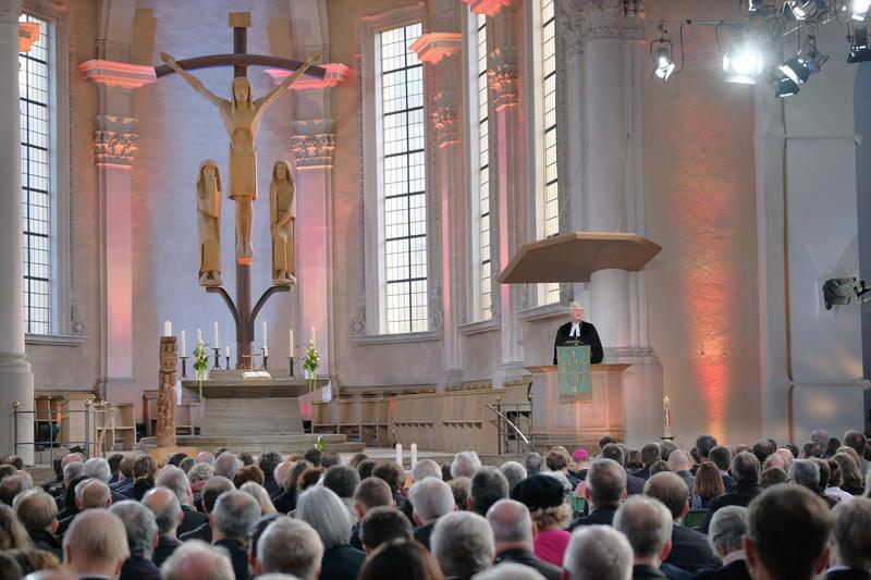 Musikalisch gestaltet wurde der Gottesdienst unter dem Leitthema "Frieden in Europa" von Jugendchören aus Frankreich, Großbritannien und Russland. Nach dem Gottesdienst wollte der frühere Vizepräsident der Europäischen Kommission, Günter Verheugen (SPD), einen Vortrag zum Thema "Das ganze Europa soll es sein" halten.