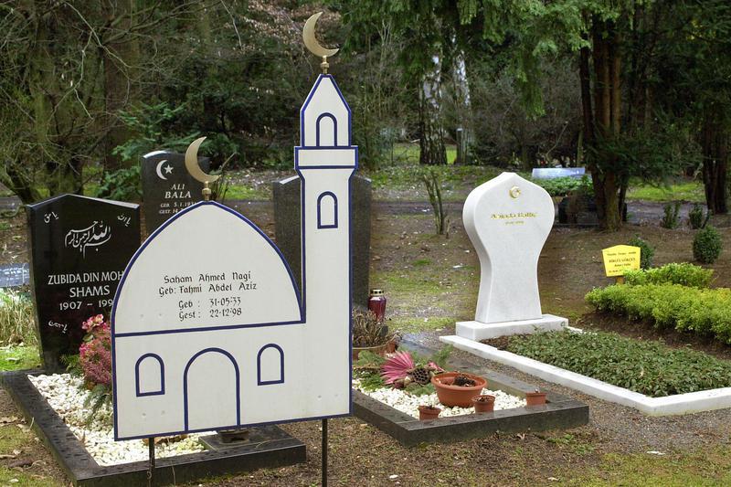 Es gibt einige Besonderheiten bei einer islamischen Bestattung: Unter anderem sollte zwischen Tod und Begräbnis nicht mehr als ein Tag vergehen - in Deutschland dagegen sind in der Regel mindestens 48 Stunden vorgeschrieben. Traditionell werden Muslime in Tücher gewickelt beigesetzt. Eine Feuerbestattung ist ihnen verboten.