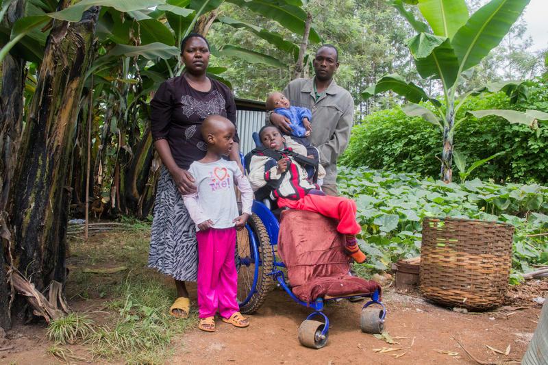 Anne Wachira schiebt ihre Tochter vor das Haus an die frische Luft. Eine knifflige Übung, den großen Rollstuhl aus der engen Hütte zu fahren. Im Garten ist es nicht viel einfacher, der Weg zwischen Lehmwand und Kürbisbeet ist schmal. An den Bananenstauden knabbert eine Ziege, deren Milch Grace und ihren Geschwistern beim Wachsen hilft. Die Wachiras haben das Tier mit einem Kredit der Gruppe gekauft. "Gemeinsam sind wir stark", versichert Karani. Anne und Joseph sind davon noch nicht ganz überzeugt, aber Karanis Zuversicht macht ihnen etwas Mut.