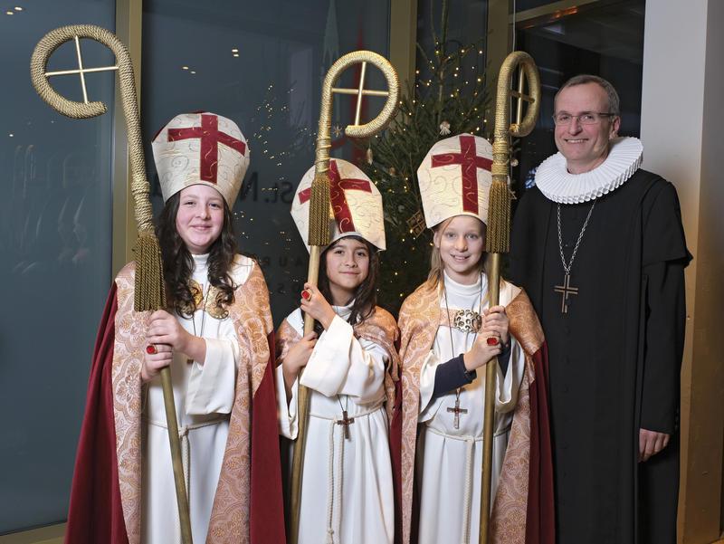 Hamburg (epd). Mit einem lebhaften Gottesdienst sind am 6. Dezember die drei neuen Hamburger Kinderbischöfinnen in ihr Amt eingeführt worden. Mathilde Mielich, Emma Sciuk und Julia Tavaglione - alle zehn Jahre alt - erhielten am Nikolaustag in der Hauptkirche St. Nikolai (Klosterstern) von Hauptpastor Martin Vetter die Bischofsabzeichen. Dazu zählen Bischofsstab, Mitra, Ring, Mantel und ein Bischofskreuz. Die drei Mädchen kommen aus den fünften Klassen der evangelischen Wichern-Schule.
