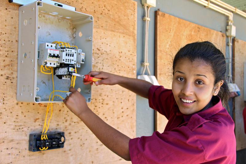 Addis Abeba (epd). Sitina Tesfaye nimmt die Kombizange, zieht die Isolierung vom Kabel ab und schließt mit dem bloßen Kupferdraht den Stromkreis. Dann legt die Äthiopierin den Schalter um. Der Strom fließt, sie lächelt. "An der staatlichen Universität, wo ich vorher war, saßen wir nur im Hörsaal", sagt die 19-Jährige. "Aber hier kann ich ganz praktisch ausprobieren, was ich gelernt habe, das ist viel besser." Tesfaye studiert im zweiten Jahr an der Agrotechnischen und Technologischen Hochschule von Harar, kurz ATTC. Noch einmal zwei Jahre, und sie wird ausgebildete Elektrikerin sein - auch in Äthiopien ein Männerberuf.