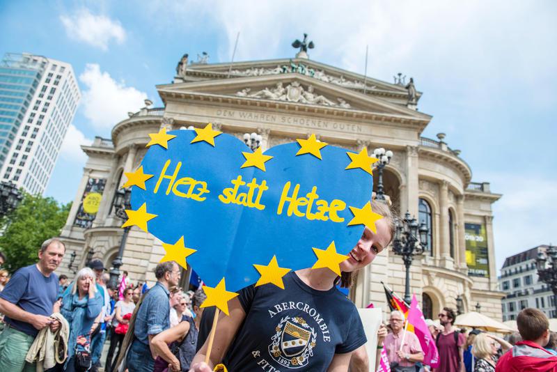 In Berlin gingen bei strahlendem Sonnenschein mehrere Tausend Menschen gegen Rechtspopulismus und für ein soziales Europa auf die Straße. Laut Veranstalterangaben zogen rund 20.000 Menschen vom Alexanderplatz zur Siegessäule am Großen Stern, die Polizei zählte etwa die Hälfte, wie ein Sprecher auf Anfrage mitteilte.