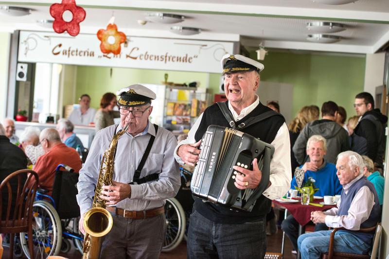Bensheim (epd). "Noch was Sahne drauf?", schreit der junge Kellner gegen "Tulpen aus Amsterdam" an. Die weißhaarigen Damen am Tisch nicken kräftig, während sie gemeinsam zum Takt der Musik wippen. Sie lehnen sich zur Seite, damit der Mann mit der Sprühdose an die Teller mit dem Erdbeerkuchen kommt. Im Hintergrund klirrt Geschirr; Bässe von Saxofon und Akkordeon hallen durch die normalerweise beschauliche Cafeteria.