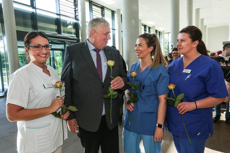 Ein Verbesserungsansatz sei die im Jahr 2020 startende generalistische Ausbildung, bei der die Alten-, Kranken- und Kinderkrankenpflege in einer neuen Pflegeausbildung verbunden werden. Dann gebe es etwa keine Unterschiede mehr bei der Entlohnung. Da auch mehr Lehrer für die Pflegeberufe gebraucht würden, versprach Laumann, die Studienkosten für Pflegepädagogen abzuschaffen.