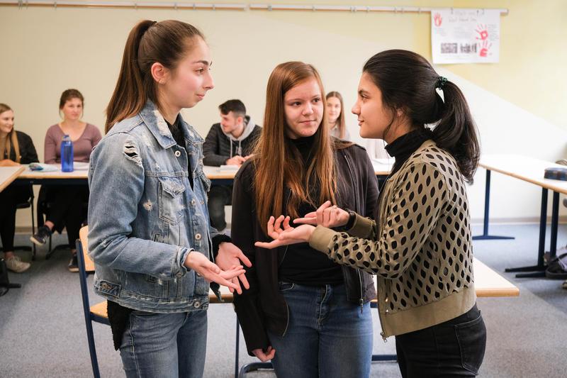 Gelsenkirchen (epd). Dilara redet eindringlich auf die beiden Mädchen neben ihr ein. "Danke, dass ihr mit eine zweite Chance gegeben habt", sagt die 17-Jährige. Simge (16) ist dagegen sauer: "Ich musste schuften und für ihn hast du ein Fest veranstaltet", beschwert sie sich bei der gleichaltrigen Aileen. Die drei spielen im Religionsunterricht eine Szene aus der biblischen Geschichte vom verlorenen Sohn nach. Dass nur Aileen katholisch ist und die beiden anderen Musliminnen sind, ist in der elften Klasse an der Evangelischen Gesamtschule Gelsenkirchen keine Ausnahme, sondern normal. Der interreligiöse Religionsunterricht gehört zu den Besonderheiten der Schule, die beim Deutschen Schulpreis am 5. Juni einen Anerkennungspreis erhielt.
