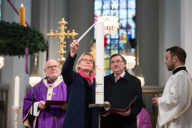 Bonn/Aachen (epd). Mit Gottesdiensten in den Domkirchen hat die katholische Kirche in Deutschland am 1. Dezember ihren zweijährigen Reformprozess begonnen, den sogenannten synodalen Weg. Der Vorsitzende der katholischen Deutschen Bischofskonferenz, Kardinal Reinhard Marx, und die Vizepräsidentin des Zentralkomitees der deutschen Katholiken (ZdK), Karin Kortmann, entzündeten im Münchner Liebfrauendom gemeinsam eine Synodalkerze. Marx betonte in seiner Predigt, beim "synodalen Weg" gehe es darum, aufeinander zu hören, auch wenn es unterschiedliche Meinungen gebe.