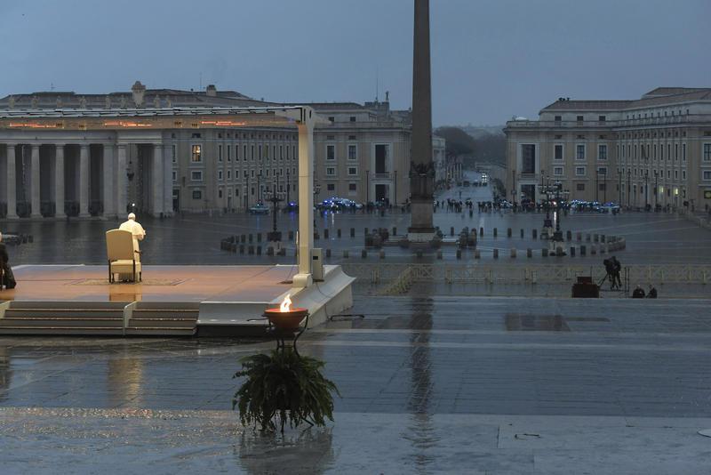 Papst Franziskus betonte die Auslöschung von Unterschieden durch die Krankheit Covid-19. Die Epidemie zeige, "dass wir alle im selben Boot sitzen", sagte das katholische Kirchenoberhaupt am Freitagabend auf dem leeren Petersplatz. In dieser Situation komme nicht jeder für sich voran, sondern nur alle gemeinsam, betonte Franziskus in der Andacht auf dem für das Publikum geschlossenen Platz. Zum Abschluss der Andacht sprach der Papst den Segen "Urbi et Orbi", den er gewöhnlich nur an Ostern und Weihnachten erteilt.