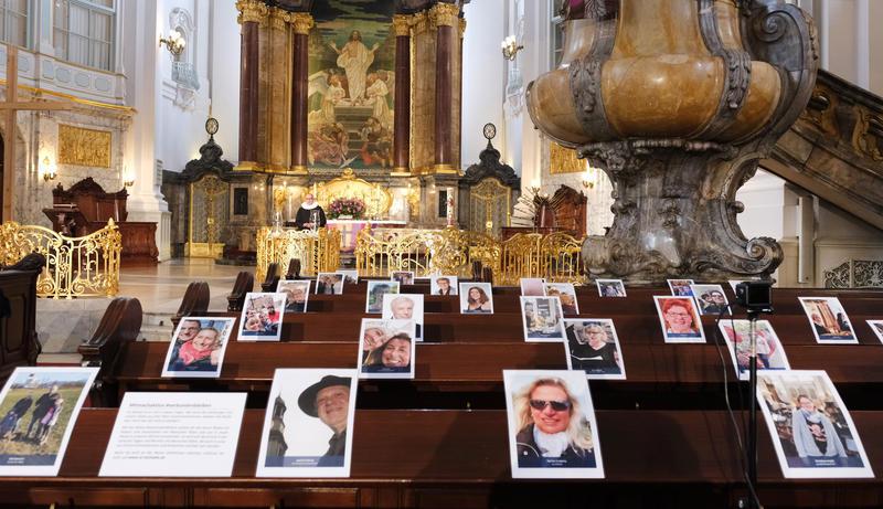 Ein Fernsehgottesdienst der besonderen Art wurde aus der evangelischen Hauptkirche Sankt Michaelis in Hamburg ausgestrahlt: Die Kirchenbänke blieben keineswegs leer, sondern waren mit Fotos im DIN-A4-Format bestückt. Die Bilder zeigten Gottesdienstbesucher, die normalerweise hier gesessen hätten - was in Corona-Zeiten nicht geht. Unter der Motto #verbundenbleiben hatte die Hauptkirchengemeinde zu der Foto-Aktion aufgerufen. "Die Rückmeldungen, die wir erhalten haben, zeigen uns deutlich, dass viele Menschen durch diese Übertragung Ermutigung und Trost gefunden haben", sagte Michel-Hauptpastor Alexander Röder.
