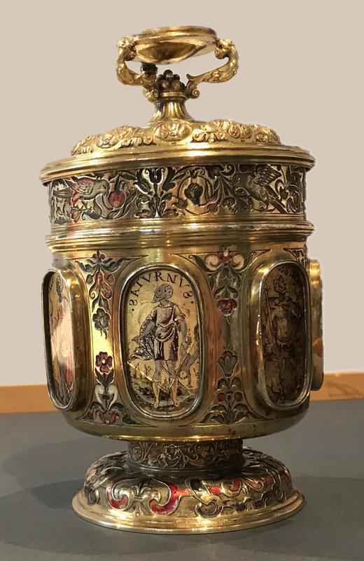 Die Forschungen belegen, dass das Trinkgefäß als Ergebnis eines politisch motivierten Tauschgeschäftes nach Köln kam. "Der Becher war die Initialzündung zu dem Projekt", sagt die Leiterin der Dokumentation im Kölner Museum für Angewandte Kunst, Nuray Amrhein. Der 14,5 Zentimeter hohe, vergoldete Silberbecher ist rundum mit Hinterglasbildern der sieben Planetengötter der Kuppa verziert. Als sich ein Kunsthistoriker mit diesen speziellen Malereien beschäftigte, sei das Stück in den Fokus geraten, sagt Amrhein. Aufmerksam wurde die Expertin, weil Fischer als eine der zentralen Figuren des Handels mit NS-Raubkunst in der Schweiz gilt.