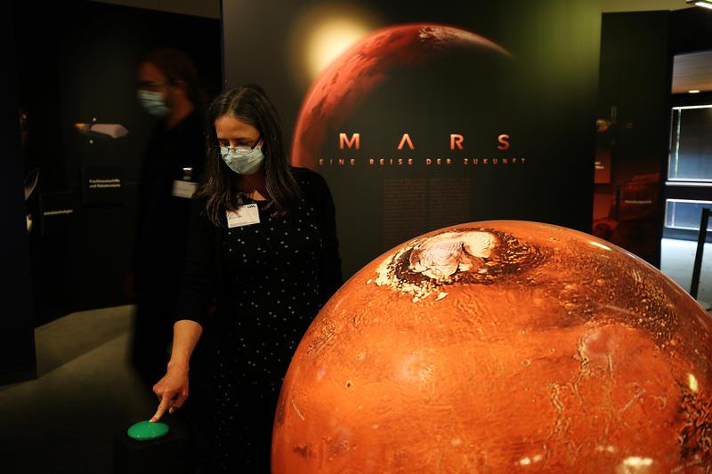 Die Besiedlung dieses Planeten gehört zu den gängigen Zukunftsvisionen der Raumfahrt. Doch bei genauem Hinsehen dank VR-Brille erweist sich der Stern als recht ungemütlich und unwirtlich mit einer Durchschnittstemperatur von minus 63 Grad Celsius. "Es ist keine gute Idee, die Erde zu verwüsten und dann dorthin zu flüchten", meint Museumsleiter Kriegs.