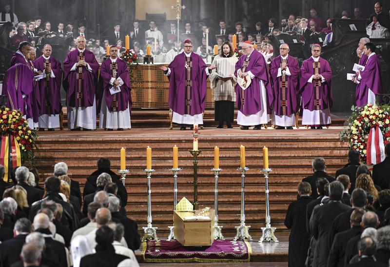 Für die eigene Beisetzung hatte Lehmann zu Lebzeiten keine Vorgaben gemacht. In einem bereits vor Jahren aufgesetzten "geistlichen Testament" notierte er lediglich, in der katholischen Kirche gebe es "viele gute Bräuche". Und irgendwie wird das Requiem trotz Fernsehkameras und all den Kardinälen, Bischöfen und Politikern zu einem persönlichen Abschied. Ein mit Lehmann befreundetes Ehepaar spielt Cello, einstige enge Mitarbeiterinnen wirken am Gottesdienst mit und auch Bischof Kohlgraf wird in seiner Predigt persönlich. Er glaube an eine Begegnung mit dem Verstorbenen im Jenseits: "Ja, Karl, das möchte ich auch dir sagen: Auf Wiedersehen."