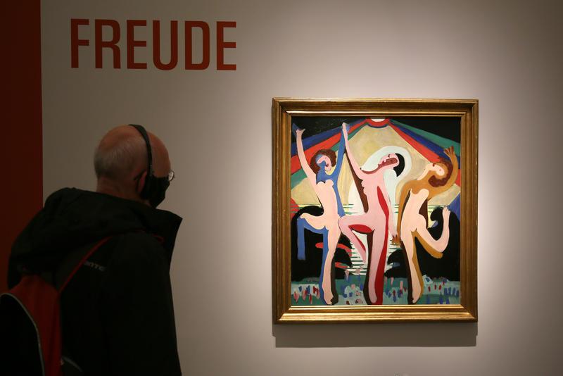 Münster (epd). Der Kontrast könnte nicht größer sein. Leicht und spielerisch mutet Ernst Ludwig Kirchners "Farbentanz" von 1932 an. Drei bunte Figuren strecken die Arme einer nicht weniger farbenfrohen Sonne entgegen. Gegenüber hängt Edvard Munchs "Weinendes Mädchen" von 1909. Nackt steht es an der Seite ihres Bettes, den Kopf in tiefer Traurigkeit gesenkt. Die beiden so gegensätzlich wirkenden Bilder sind Teil der Ausstellung "Passion Leidenschaft. Die Kunst der großen Gefühle", die bis zum 14. Februar 2021 im LWL-Museum für Kunst und Kultur in Münster zu sehen ist.